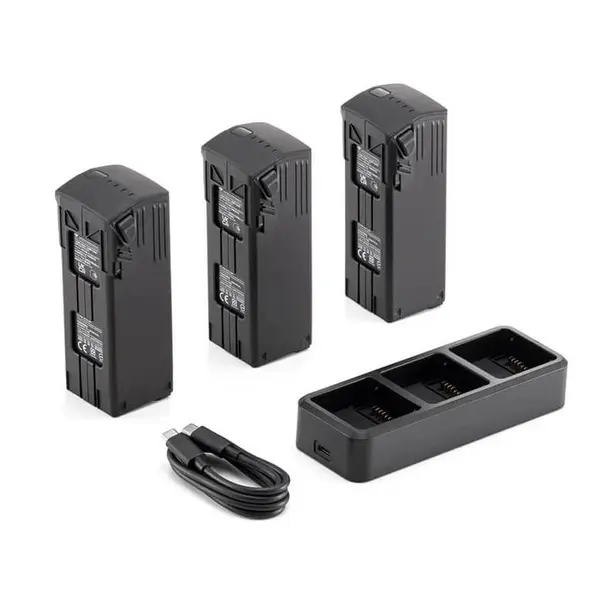 До складу комплекту входять три інтелектуальні польотні акумулятори Intelligent Flight Battery та фірмова зарядна станція DJI Mavic 3 потужністю 100 Вт. Акумулятори побудовані на базі літій-полімерної технології LiPo 4S, що забезпечує стабільну подачу енергії, контроль параметрів живлення та безпечну експлуатацію.