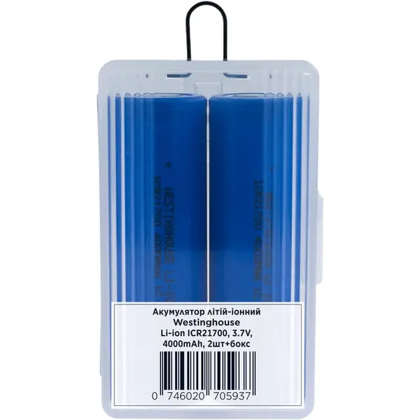 Набір Westinghouse IСR21700-4000-2/box комплектується по 2 шт в боксі пластиковому прозорому з вішаком для 2-х акумуляторів 21700, що дозволяє їх зберігати в горизонтальному або підвішеному положені. Акумулятор літій-іонний Westinghouse Li-ion ICR21700, 3.7В, 4000 mAh, 1С від однієї з провідних електротехнічних компаній США з високим постійним споживанням струму до 12А - ліхтарі, павербанки, дрони та ін. IСR21700-4000 має тривалий термін роботи та зберігає свої властивості за екстремальних умов із кількістю циклів перезарядження до 300 та низьке саморозряджання 5-7% на рік. Акумулятор без захисної плати не бажано використовувати в приладах без захисту від перерозряджання. Перед першим використанням необхідно обовязково зарядити акумулятор до повної ємності. Струм розряду (заряду), обов’язково не повинен перевищувати вказаний у специфікації, надмірний струм може спричинити зниження ємності, нагрівання та ушкодження батареї. Розряд (заряд) батареї повинен тривати в межах температури навколишнього середовища, яка передбачена специфікацією. Не можна перезаряджати більше 4.2В та розряджати нижче 3В. При тривалому зберіганні без використання потрібно раз на шість місяців заряджати акумулятор.