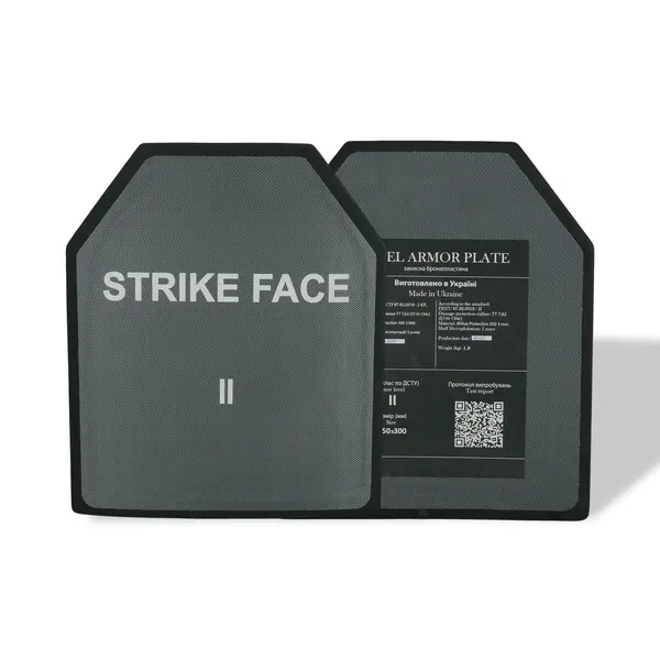 - 2-й клас захисту за ДСТУ 8782:2018 — надійно зупиняє кулі 7,62×25 мм (ТТ, набій 57-Н-134с) при швидкості до 430±15 м/с.