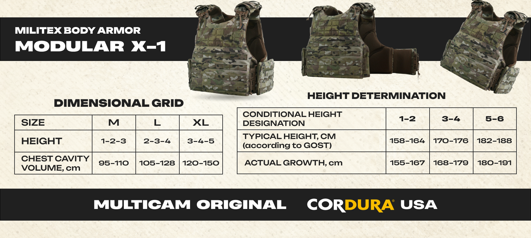 - with armor plates ranging in size from Medium 31.8x24.1cm to Extra Large 35.5x28cm;