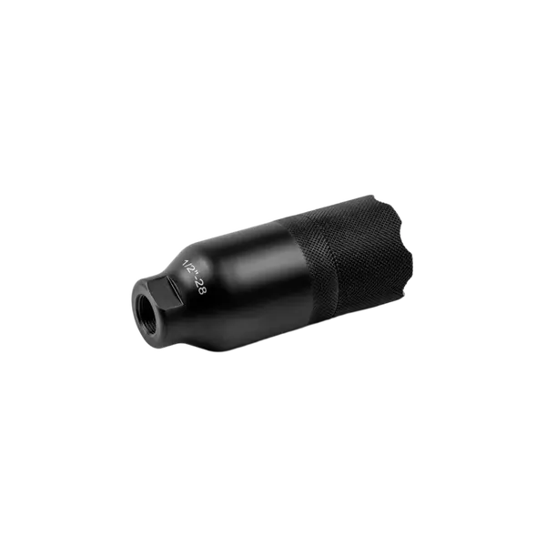 A compact and durable flame suppressor with an internal cone effectively "extinguishes" the flash of a shot and helps to maintain the masking of the position. It is securely fixed to the 1/2”-28 UNEF thread with a complete locknut — spontaneous loosening is excluded.