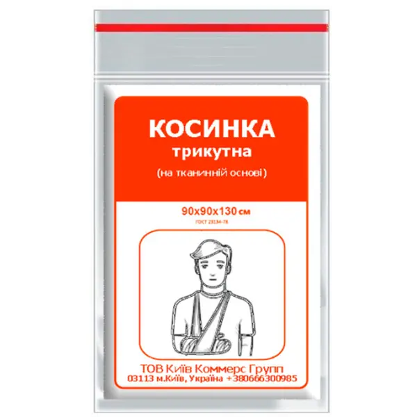 Треугольная косынка (Triangular bandage) 90х90см (на тканевой основе)   универсальное средство для фиксации, иммобилизации и перевязки конечностей или головы. Может быть использован как ремень-фиксатор или бинт для наложения кровоостанавливающих повязок. Применение Используя треугольную косынку, можно с легкостью зафиксировать травмированную руку, а вместе с картоном даже наложить шину и иммобилизационный шейный воротник!