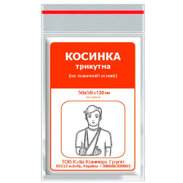 Triangular bandage 50x50 cm (fabric-based) is a universal tool for fixation, immobilization and bandaging of limbs or head. It can be used as a strap-fixer or a bandage for applying hemostatic bandages. Application Using a triangular handkerchief, you can easily fix an injured hand, and together with cardboard, you can even apply a splint and an immobilization neck collar!