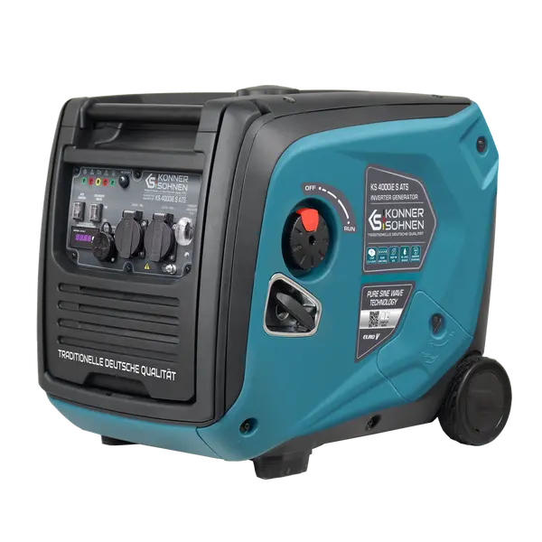 Könner & Söhnen inverter generators are equipped with a transport system for easy movement. Two wheels and a handle that lifts up when moving the generator ensure comfortable transportation and mobility of the unit.