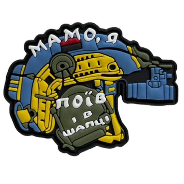 Patch "MOM I ATE AND WEAR A HAT" blue-yellow — PVC