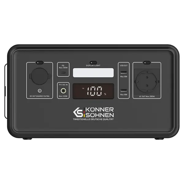 Multiple charging methods: from solar panel thanks to solar energy (optional), from AC mains and from 12V car cigarette lighter