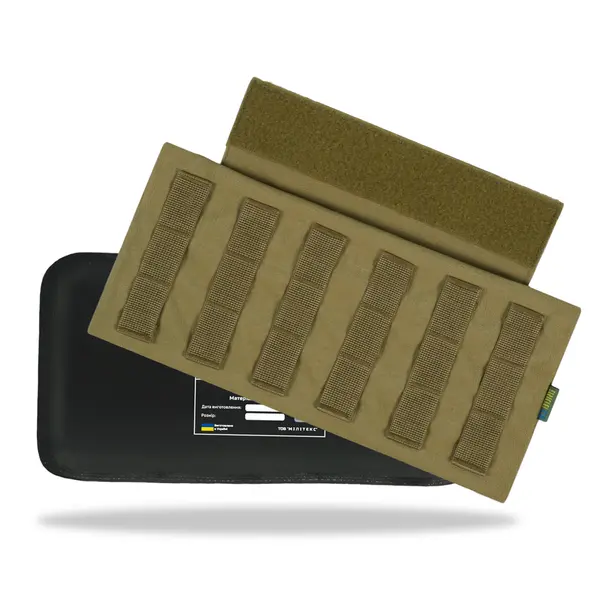 The lower back protection cover for the Kiborg ballistic pack is made of Cordura 1000D material with NIR impregnation - less visible in the PNB, with a double polyurethane coating that protects against moisture and lubricants, does not support combustion, does not wear out and does not fade in the sun.