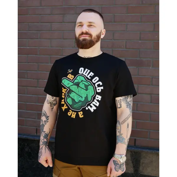 Футболка з принтом Оце ось вам, а не Харків кулір шовкографія чорна L (48)