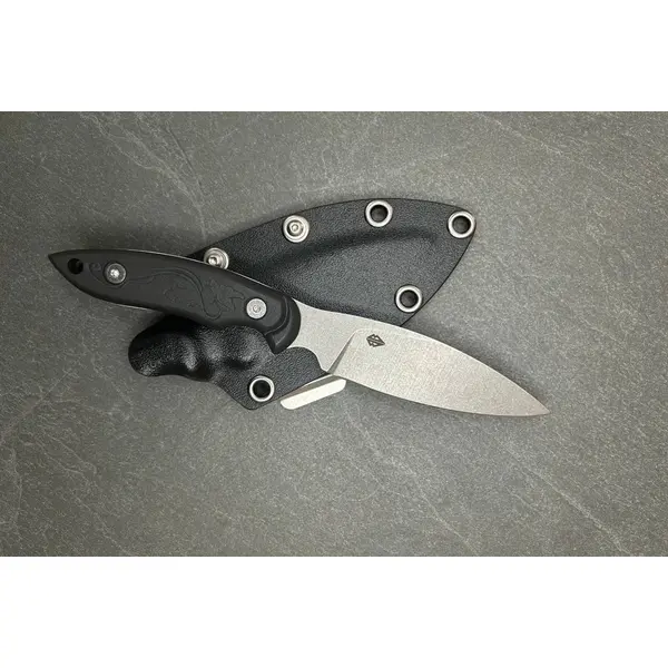 Пластиковий чохол надійно фіксує ніж і дозволяє швидке вилучення. Знімна сталева кліпса сумісна з MOLLE, а отвори підтримують монтаж TEK LOK, що дає можливість адаптувати спосіб носіння під власне спорядження або ремінь.