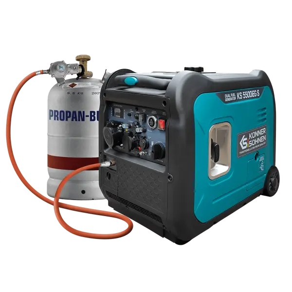 У комплект поставки входить все необхідне для використання газу в якості пального:1. Вбудований редуктор, що забезпечує подачу газу під час роботи двигуна та запобігає витоку газу, а також зупиняє подачу газу при вимкненому генераторі.2. Шланг для підключення газового балону довжиною 1,5 м забезпечує комфортне під єднання.3. Для підвищення надійності газової магістралі на шланг встановлений додатковий редуктор, який кріпиться на балон. Він забезпечує зниження тиску та знімає можливість перевантаження газового з єднання. Потрібно лише під єднати генератор до балону та запустити двигун.