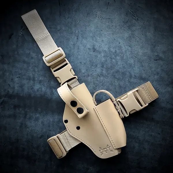 Кобура под ТТ- набедренная, цвет койотКожаная набедренная кобура под ТТ. Цвет койот Выполнена из натуральной кожи. Кобура из кожи толщиной 2.5 мм Верхнее крепление на ремень 5 см шириной, на ноге фиксируется на резинке. Стропа, резинка, фастексы крепкие. Ширина фастексов 4 см Регулируется по вертикали и горизонтали. Кобура не болтается, сидит плотно. Производство Украина В наличии под правую и левую руку! Каталог товаров от DOT-ARMS Ваш лучший выбор Качество производства Мы гордимся тем, что каждое изделие DOT-ARMS изготавливается с использованием натуральной кожи и высококачественных материалов. Наши мастера уделяют внимание каждой детали, от выбора сырья до финальной обработки. Продукция проходит строгий контроль качества, чтобы гарантировать долговечность и надежность в любых условиях использования. Широкий ассортимент Наш каталог включает разнообразие кожаных аксессуаров для самых разных целей. В ассортименте представлены кобуры, паучеры, ремни, ножны, рюкзаки, бананки и другие изделия. Мы стремимся удовлетворить потребности как профессионалов, так и любителей, предоставляя удобные, надежные и стильные решения для каждого клиента. Украинское производство DOT-ARMS это бренд, который поддерживает местное производство и сохраняет традиции украинского ремесла. Мы стремимся развивать локальную индустрию, предоставляя рабочие места и создавая продукцию, которой можно гордиться. Покупая наши изделия, вы поддерживаете украинский бизнес и вклад в развитие национальной экономики. Дизайн и функциональность Мы понимаем, что аксессуары должны быть не только практичными, но и эстетичными. Поэтому наши изделия сочетают в себе современный дизайн и продуманную функциональность. Каждая модель разрабатывается с учетом удобства использования, надежной фиксации и быстрого доступа. Стиль и эргономика делают продукцию DOT-ARMS идеальной как для повседневного использования, так и для профессиональных задач. Основные факторы, обеспечивающие успешность нашего ассортимента Высокое качество материалов и изготовления Изделия DOT-ARMS создаются из натуральной кожи и прочных материалов, что обеспечивает долговечность и надежность. Строгий контроль на всех этапах производства гарантирует высокое качество каждого продукта. Практичность и функциональность Наш ассортимент разработан с учетом реальных потребностей пользователей. Каждая деталь тщательно продумана для удобства эксплуатации, надежной фиксации и быстрого доступа, что делает продукцию незаменимой как в повседневной жизни, так и в профессиональной деятельности. Разнообразие ассортимента Мы предлагаем широкий выбор продукции: от кобур и паучеров до рюкзаков и ножен. Это позволяет клиентам найти именно то, что соответствует их запросам, независимо от сферы применения или индивидуальных предпочтений. Современный дизайн Эстетика и функциональность гармонично сочетаются в нашей продукции. Стильные и эргономичные аксессуары DOT-ARMS подчеркивают индивидуальность пользователей, оставаясь удобными и практичными в использовании. Простой алгоритм покупки Оформление заказа сделайте заказ через корзину на сайте в удобное для вас время. Мы связываемся с вами, чтобы уточнить детали или ответить на ваши вопросы. Оплата за заказ оплатить можно онлайн, на банковскую карту, при получении, наличным