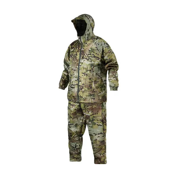 Маскувальний костюм у камуфляжі Multicam призначений для використання в польових умовах, під час активного відпочинку або тактичних завдань. Завдяки водонепроникній тканині він захищає від дощу та вологи, а також може використовуватись як верхній шар поверх основного одягу.