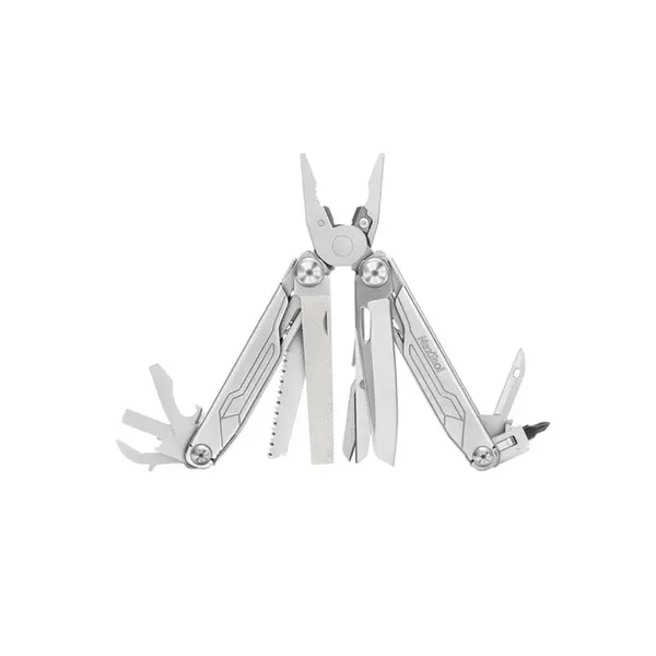 - 19 функцій. Вам доступні плоскогубці, гострогубці, кусачки, ножиці, відкривачки для банок та пляшок, ніж, пила, викрутки SL5 та SL4.5, хрестова викрутка, напилок по металу та напилок з алмазним покриттям, шило, інструменти для зачищення проводів, цвяходер та лінійка. Функціонал можна доповнити набором змінних біт, який доступний для придбання окремо.