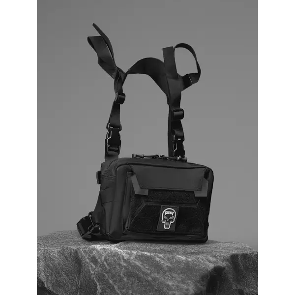 Регульовані лямки дозволяють точно підігнати посадку сумки під користувача, забезпечуючи щільну та стабільну фіксацію. На передній частині розміщена кишеня з клапаном, доповнена Velcro-панеллю для індивідуальних патчів та позначок. Міцний матеріал щільністю 600D захищає вміст від механічних пошкоджень, зносу та вологи.