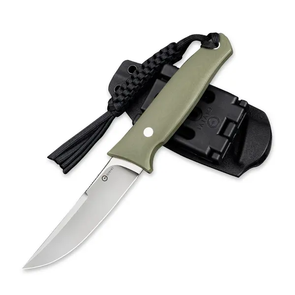 Конструкція ручки проста і зручна, підійде для щоденного використання. За рахунок мінімалістичності забезпечується максимальна практичність ножа. Покриття ручки - якісний та надійний матеріал G10 зеленого кольору. Характеризується довговічністю, добре зберігає гарний вигляд. Ручка зручно лежить у руці, є виїмки для великого пальця для гарного захвату.