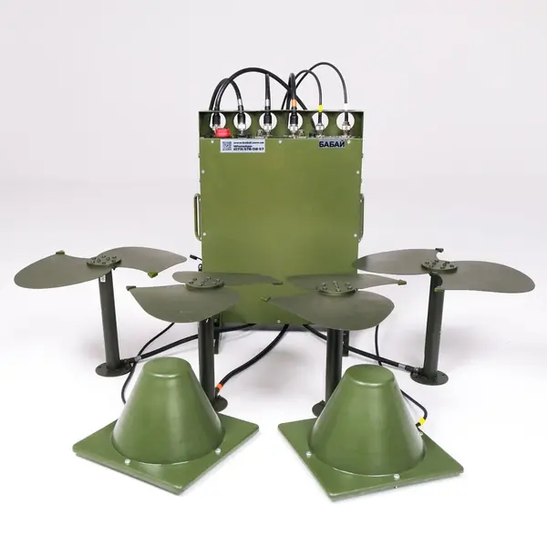 Окопний РЕБ “Бабай 6М” FPV версія — це спеціалізована стаціонарна система радіоелектронної боротьби, розроблена для нейтралізації FPV-дронів у окопах, на позиціях та укріпленнях. Оснащена шістьма високопотужними джамерами, система перекриває частоти 200–1100 МГц з загальною потужністю понад 370 Вт, створюючи купольний захист 360° з радіусом дії 50–200 м.