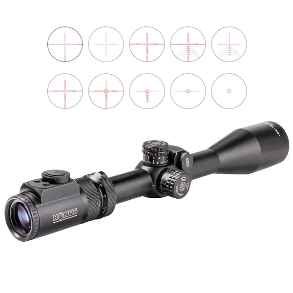 KONUS KONUSPRO EL-30 6-24x50 LCD – цифровий оптичний приціл нового покоління, який задовольнить потреби багатьох стрільців. Великий вибір прицільних сіток дозволить використовувати пристрій у багатьох сферах, особливо в тактичному полюванні та спортивній стрільбі. Змінне збільшення прицілу підходить для використання з вогнепальною зброєю, що є ідеальним для стрільби на далеких дистанціях.