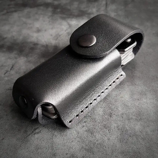 Подсумок под мультитул чёрный Паучер (подсумок) под мультитул. Выполнен из натуральной плотной кожи под ремень 5 см шириной. Цвет чёрный Подходит для ножа высотой 11см, шириной 4,5см Фиксация на кнопке. Производство Украина.
