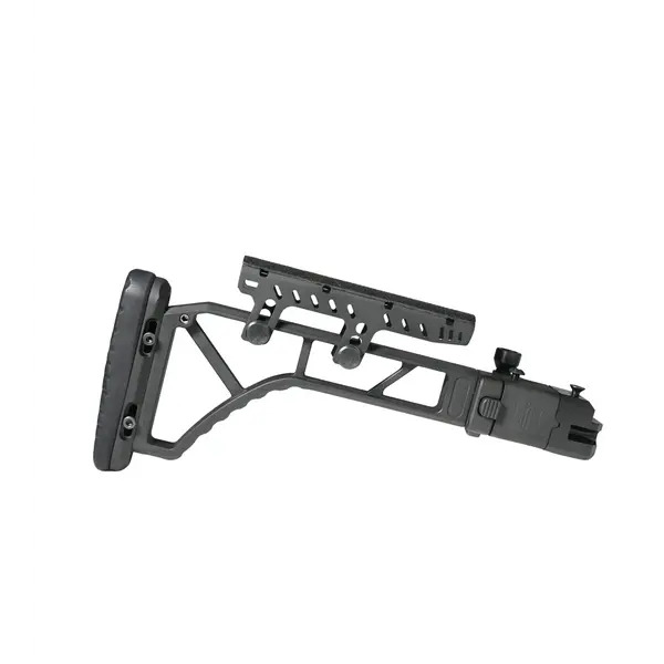 Приклад складається вліво та надійно фіксується як у складеному, так і в розкладеному положенні. На адаптері передбачені окремі кнопки для складання та розкладання.