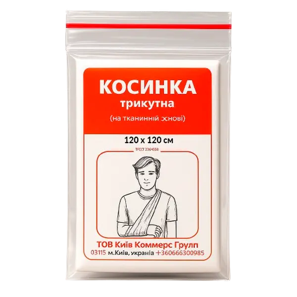 Треугольная косынка используется для перевязки ран, иммобилизации переломов и вывихов, в качестве повязки для поддержания поврежденной части тела, а также защиты травмы от внешнего воздействия. Косынка индивидуально упакована в комплекте с двумя английскими шпильками для облегчения ее фиксации. Легко размещается в любой аптечке или кармане и является незаменимым изделием для базовой перевязки или наложения шины.