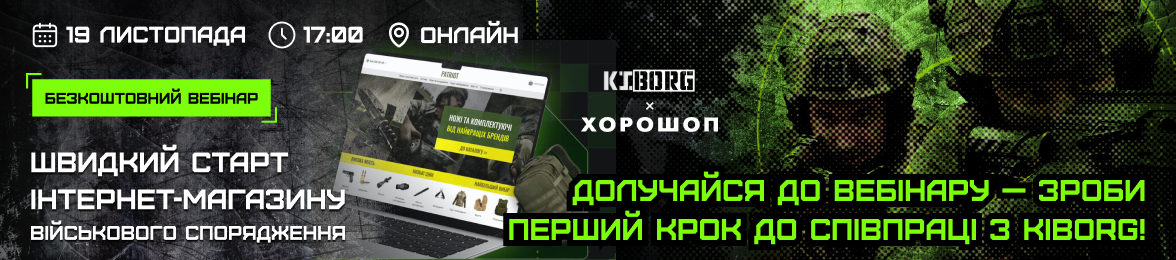 Завдяки нашій співпраці з платформою Хорошоп у вас є можливість за один день отримати інтернет-магазин, вже наповнений товарами KIBORG. Вам залишиться тільки обрати один із сотень готових дизайнів, персоналізувати сайт і налаштувати його під свої потреби.